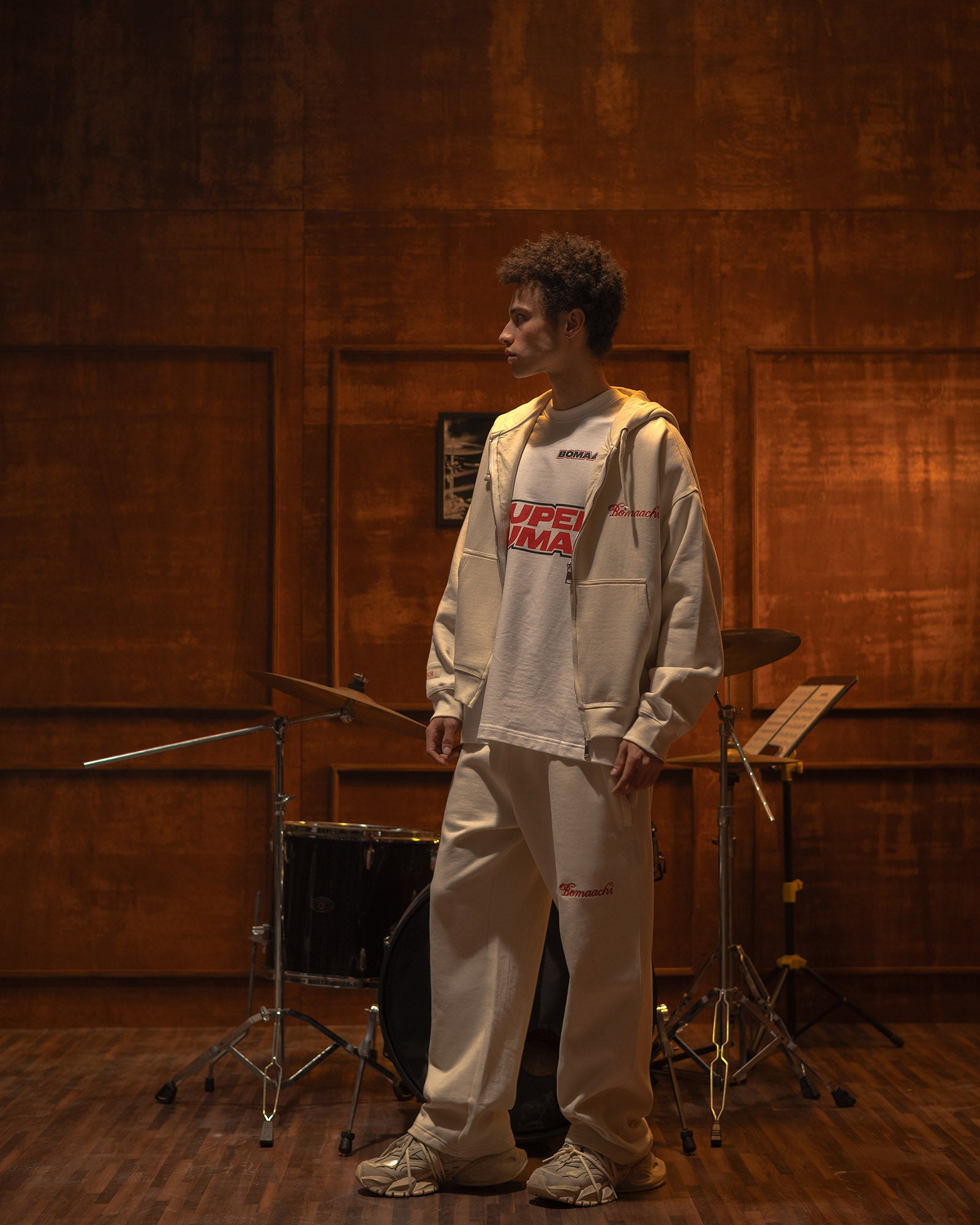 Soft, heavyweight fabric with a relaxed fit that doesn’t cling or try too hard. The script detail keeps it clean and intentional, without turning it into a “look.”